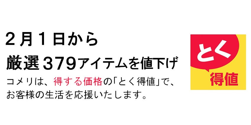 2月1日より、コメリのオリジナル商品を含め、厳選379アイテムを値下げ!