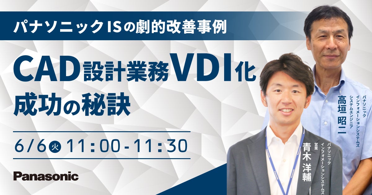 パナソニック インフォメーションシステムズ株式会社は、2023年6月6日(火)CAD設計業務VDI化にフォーカスしたオンラインセミナーを開催します。