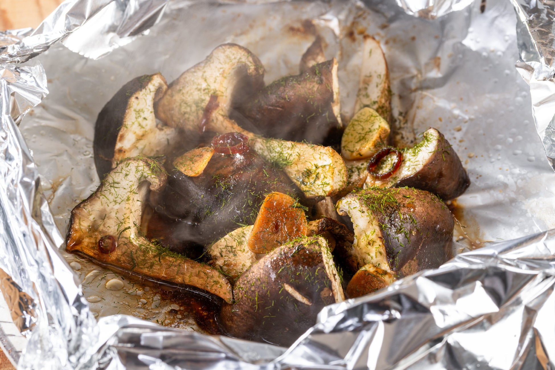 ホイルを開けた瞬間にしいたけとバター醤油の豊潤な香りが広がります。