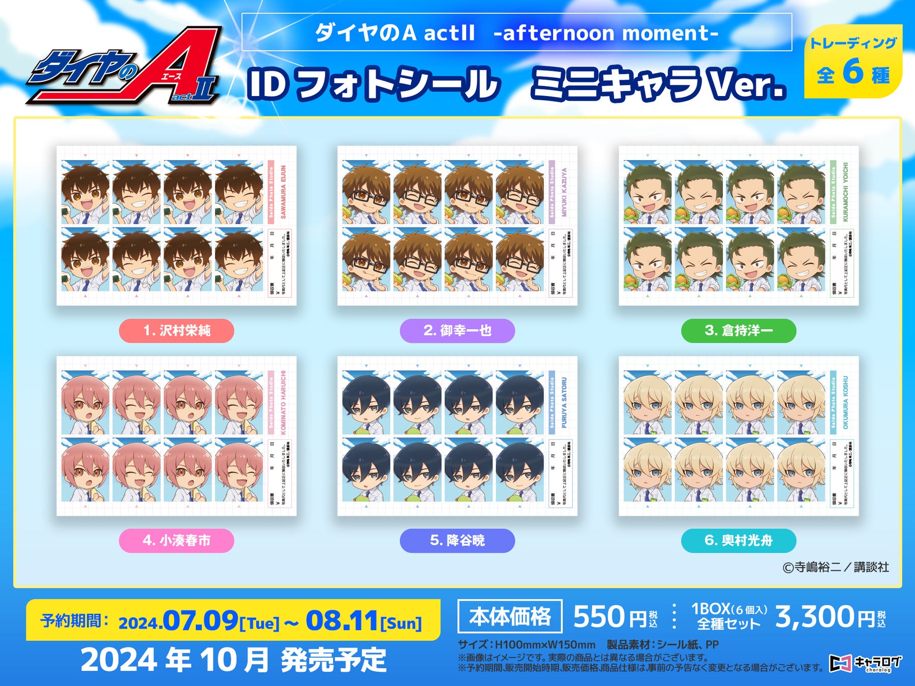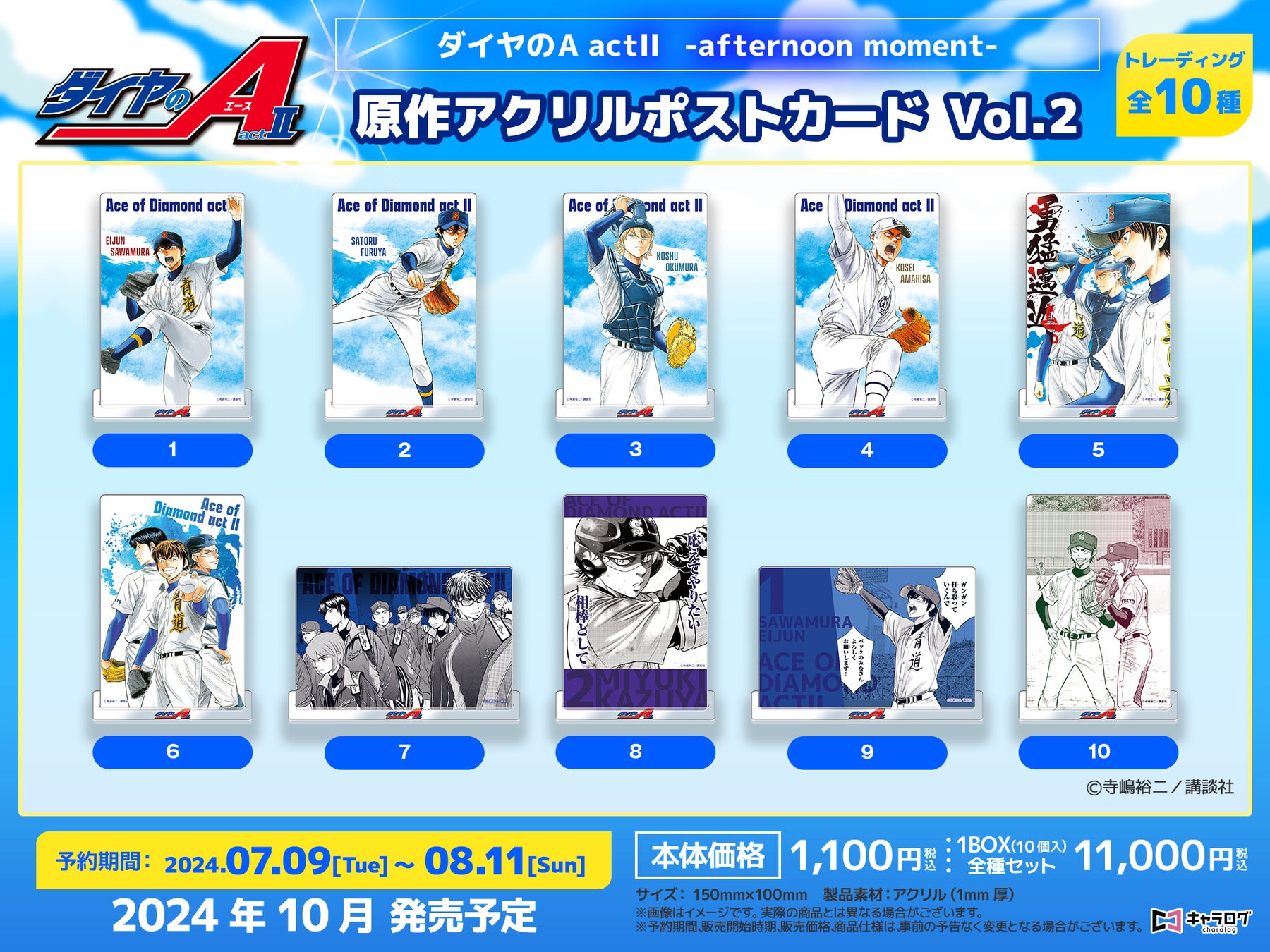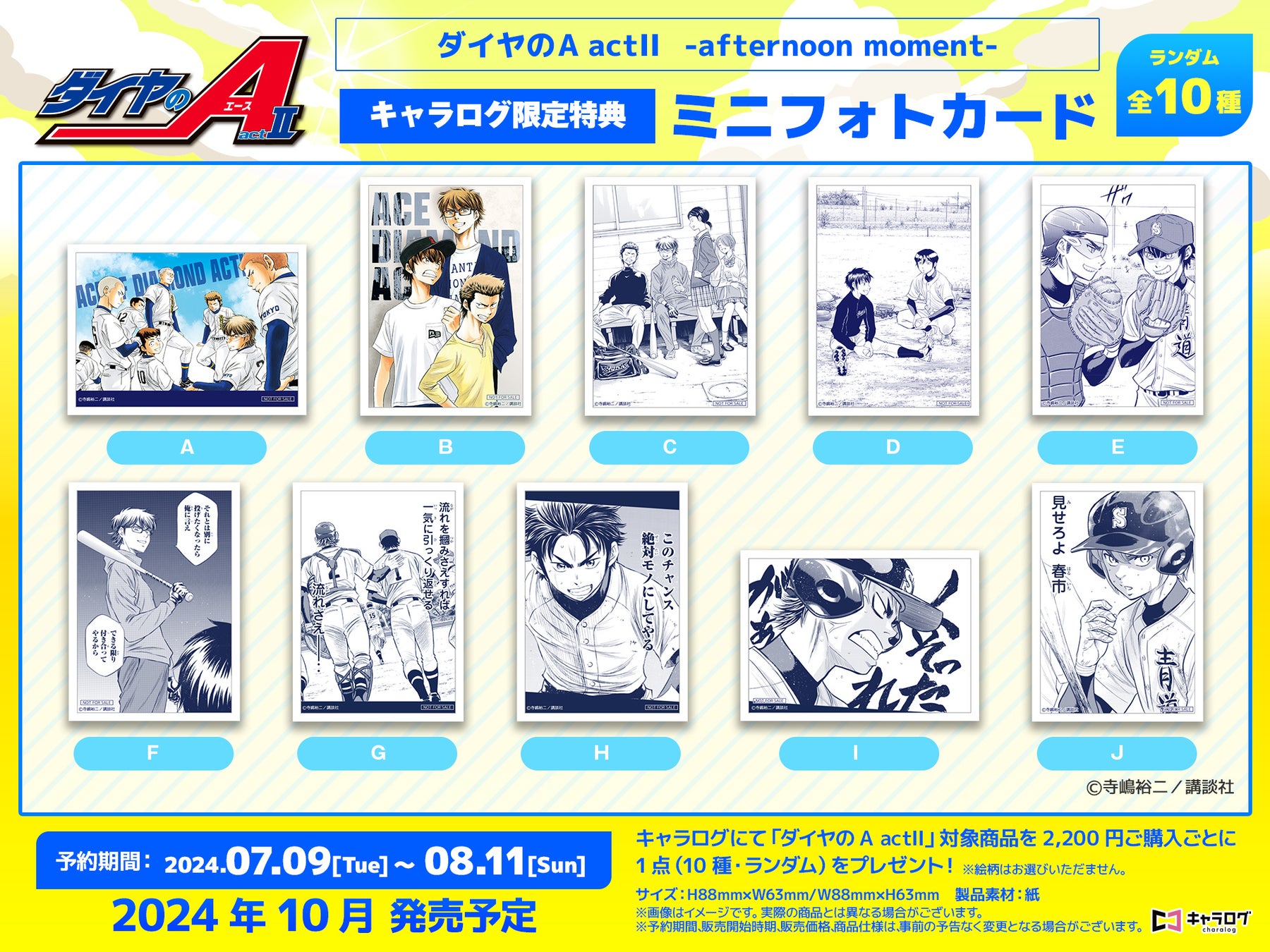 ◆「キャラログ」にて、「ダイヤのA actII」商品を2,200円(税込・送料除く)をご予約ごとに、ミニフォトカード(全10種・ランダム)を1点プレゼント!