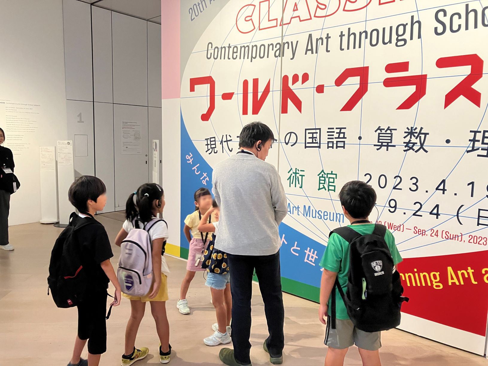 観覧した展覧会は、森美術館開館20周年記念展の「ワールド・クラスルーム:現代アートの国語・算数・理科・社会」で、森美術館のアソシエイト・ラーニング・キュレーターの白木栄世氏が子供たちのキュレーターを務めてくださいました。白木氏はワークショップや「手話ツアー」「耳でみるアート」などのラーニング・プログラムの企画・運営を行うほか、日本財団DIVERSITY IN THE ARTS企画展「ミュージアム・オブ・トゥギャザー」で障害のある方と鑑賞を楽しむアクセス・アート・プログラムを担当されたり、THEATRE for ALLの公募事業の審査員も務められています。