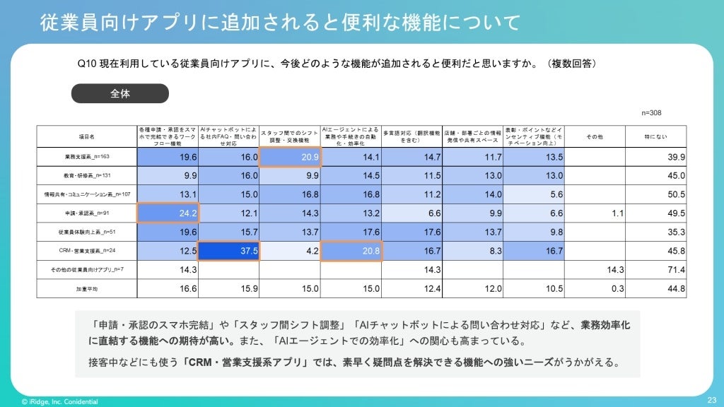 利用率最多は「業務支援系」アプリ、「教育・研修系」ではスマホとPCで大きな傾向差。現場が求めるのはスマホ最適化とデータやAIによる接客支援