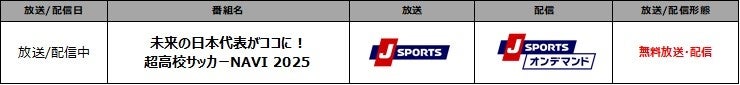 また、今シーズンの見どころをお伝えする番組「未来の日本代表がココに!超高校サッカーNAVI 2025」を絶賛放送・配信中※3です。名良橋晃氏、ワッキー氏(ペナルティ)、原大悟氏の高校サッカーが大好きな3名が、八伏紗世、目代結菜の異色の美女達に、高円宮杯U-18プレミアリーグの魅力をプレゼンしています。さらに、「サッカーニュース Foot!」は新たに、「サッカーニュース Foot!超高校サッカー通信」として、よりパワーアップして、大会の魅力をお伝えしますのでご期待ください。