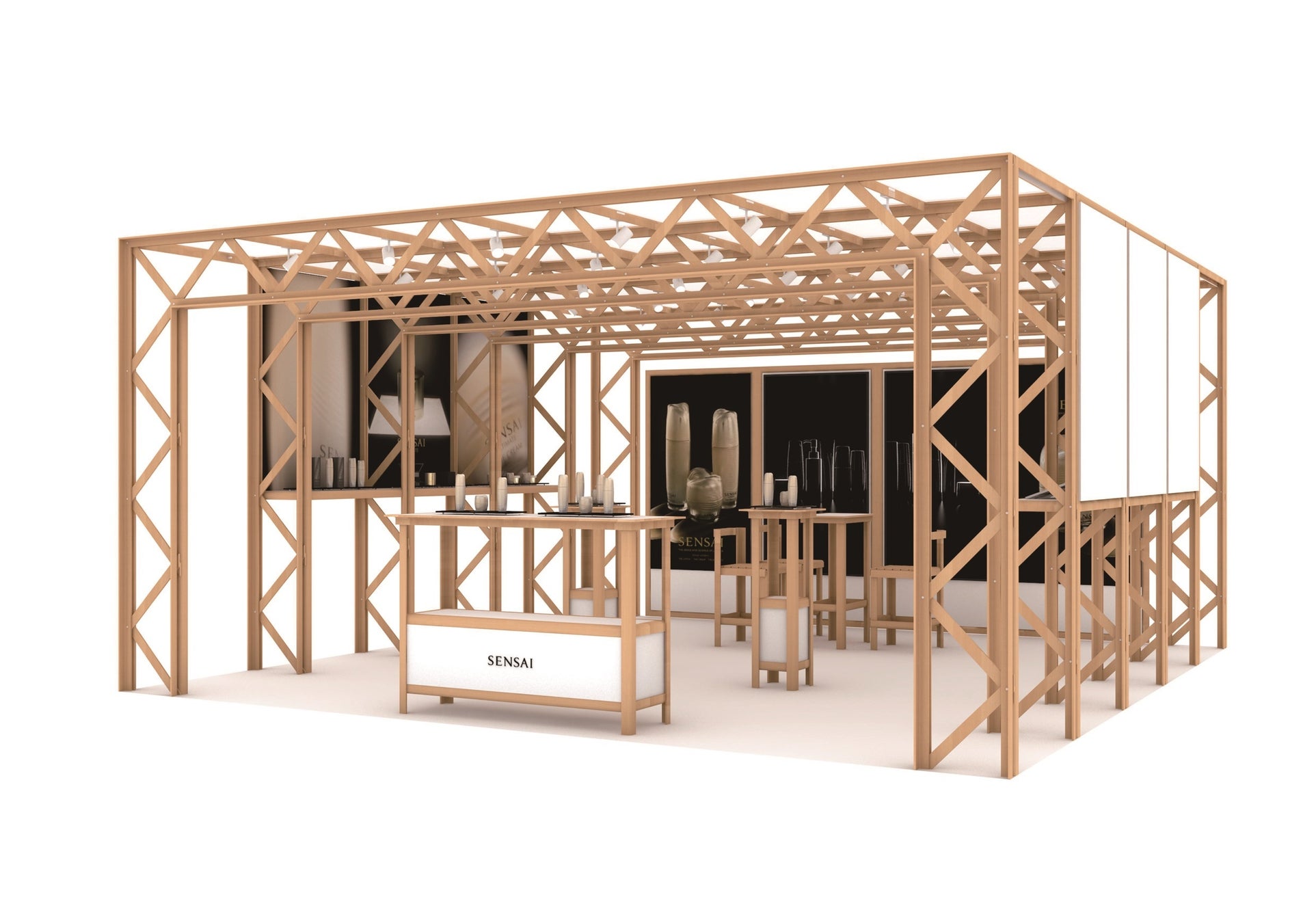 Japanese Sustainable Luxuryの2つめのコラボレーションとして、SENSAIは、建築家の坂 茂氏とともに、施工の際に出る資材の無駄を極力抑えたポップアップ空間をデザインしました。この目的のひとつは、店舗の解体とともに廃棄される資材が大量に出てしまうという従来のポップアップイベントの課題を克服することでした。