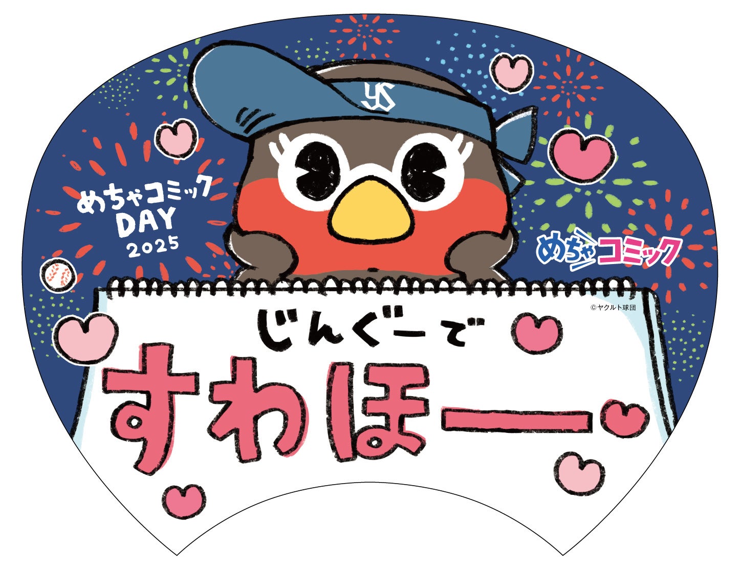 当日は来場者先着20,000名様に、「めちゃコミック」で無料連載中の東京ヤクルトスワローズコラボ漫画のさとうもぐも先生描き下ろしのつばみイラストが入った特製うちわを配布します。