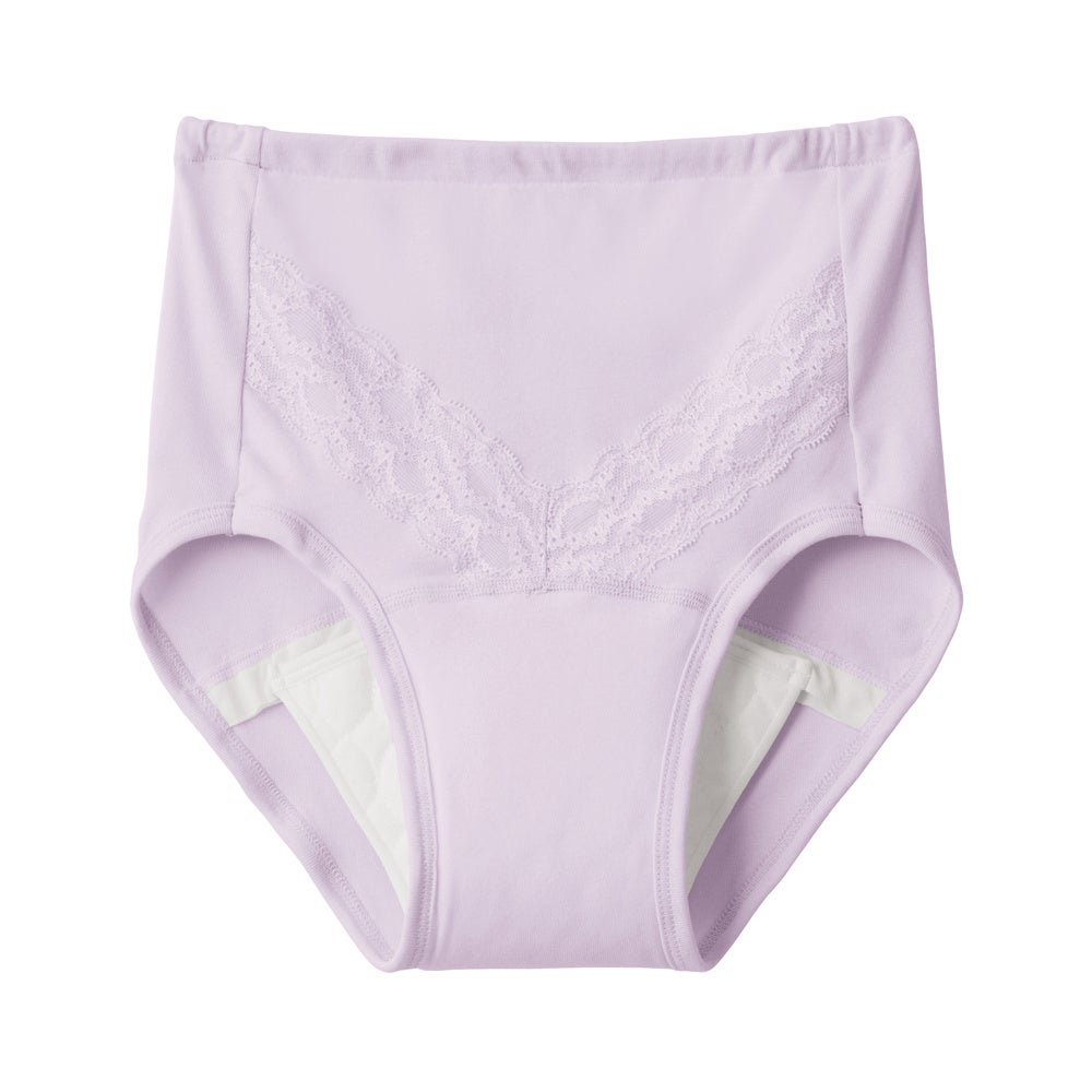 紳士は7分袖と半袖、婦人は7分袖と3分袖、50cc対応の吸水ショーツをラインアップ。婦人物は、ピンクとライラックのやさしい色合いで、前立て部に繊細なレースをあしらうなどデザインにもこだわりました。