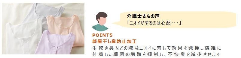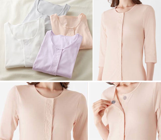 「愛情らくらく肌着」シリーズは、介護や入院などのシーンを想定した、着る人だけではなく着せる人のことも