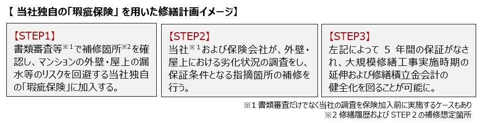当社独自の「瑕疵保険」を用い大規模修繕工事実施時期を延伸し、修繕積立金会計を健全化する仕組みを開発