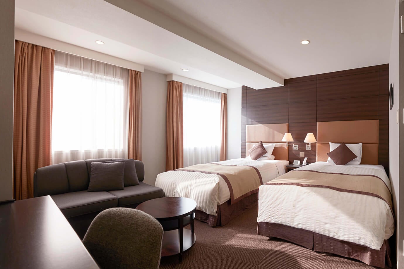 大きな窓から陽光の射し込む明るいコーナーツインをご用意します。