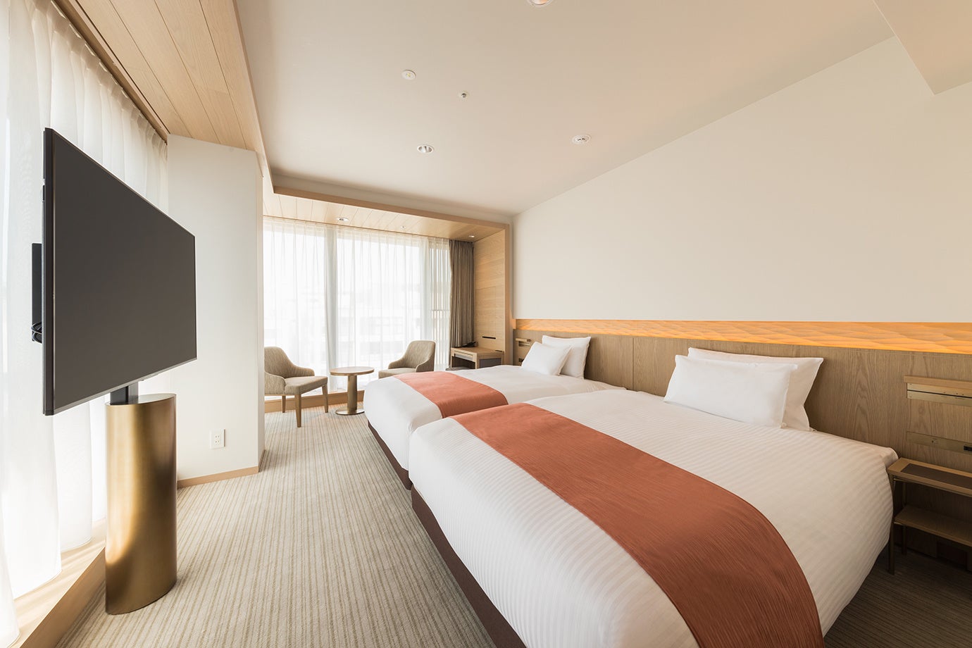 大きな窓から望む東京の景色を楽しめる客室や、角部屋の開放的な眺望を満喫できる客室など、 客室内での滞在を考えたゆとりある広さの客室をご用意しました。