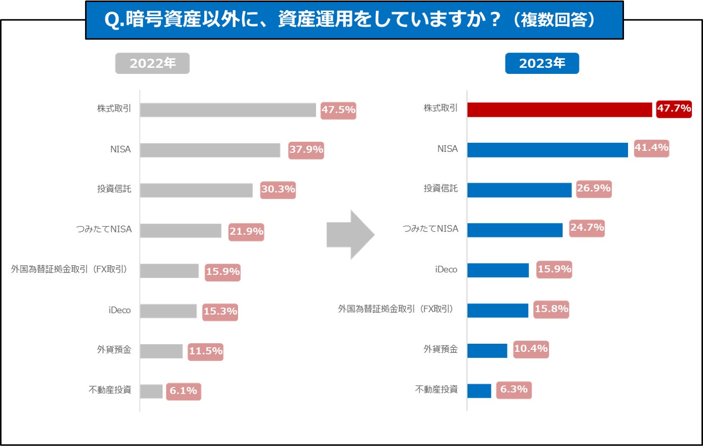 暗号資産以外に資産運用をしている人のうち約50%は「株式取引」を利用