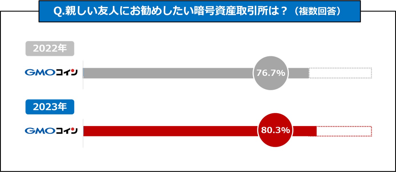 GMOコインを親しい友人にお勧めしたいと回答したユーザーは80%以上!