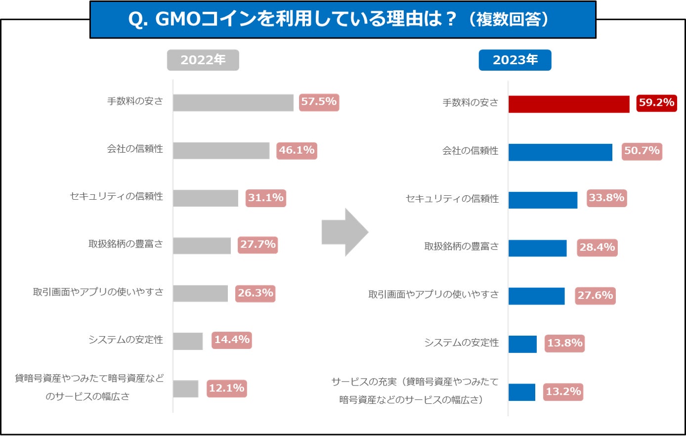 ①GMOコインの利用理由は「手数料の安さ」が2年連続第1位に!