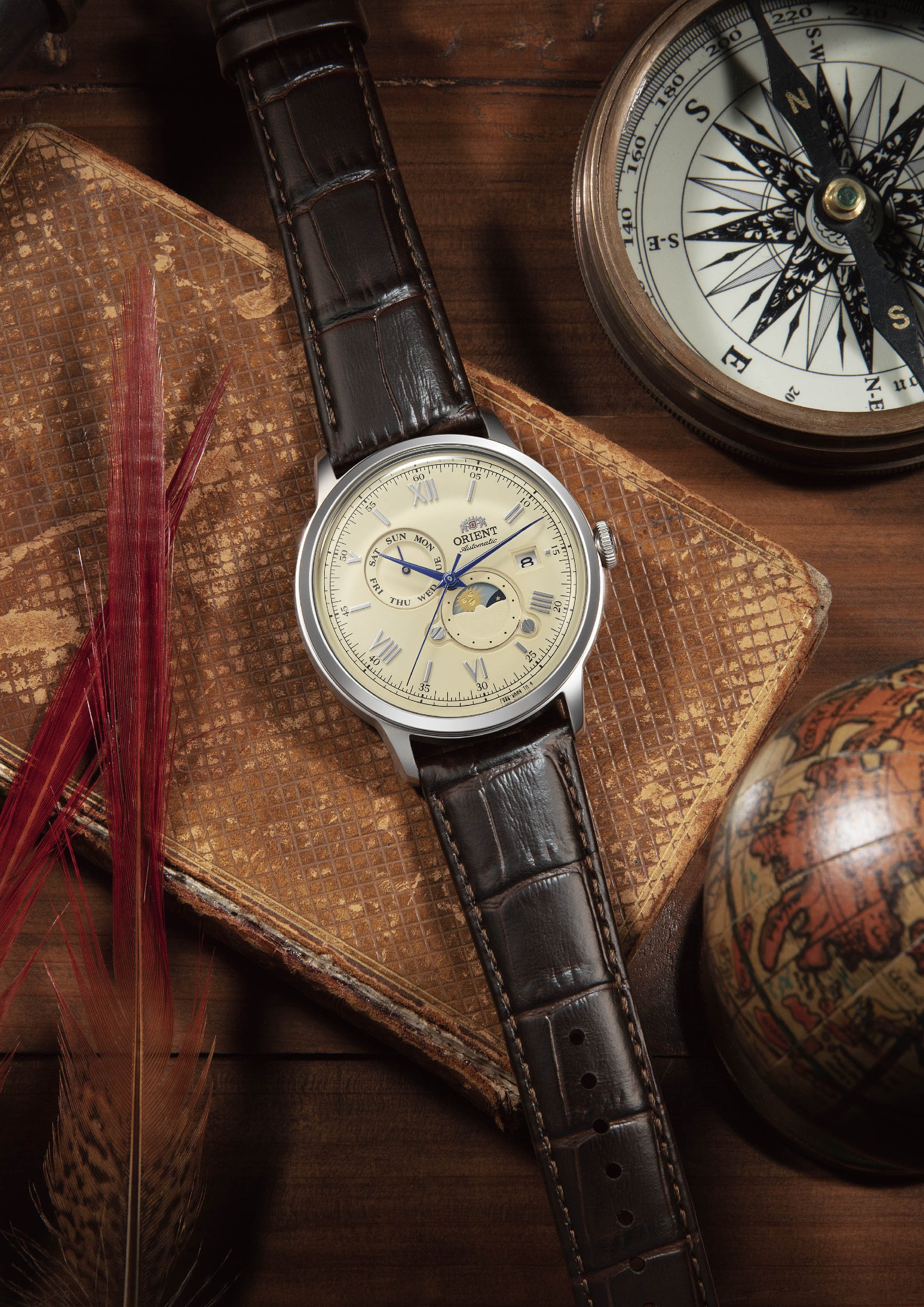 「Orient」から『Orient Bambino』にサンアンドムーンとデイ・デイト表示機能を併せ持つ最新作登場