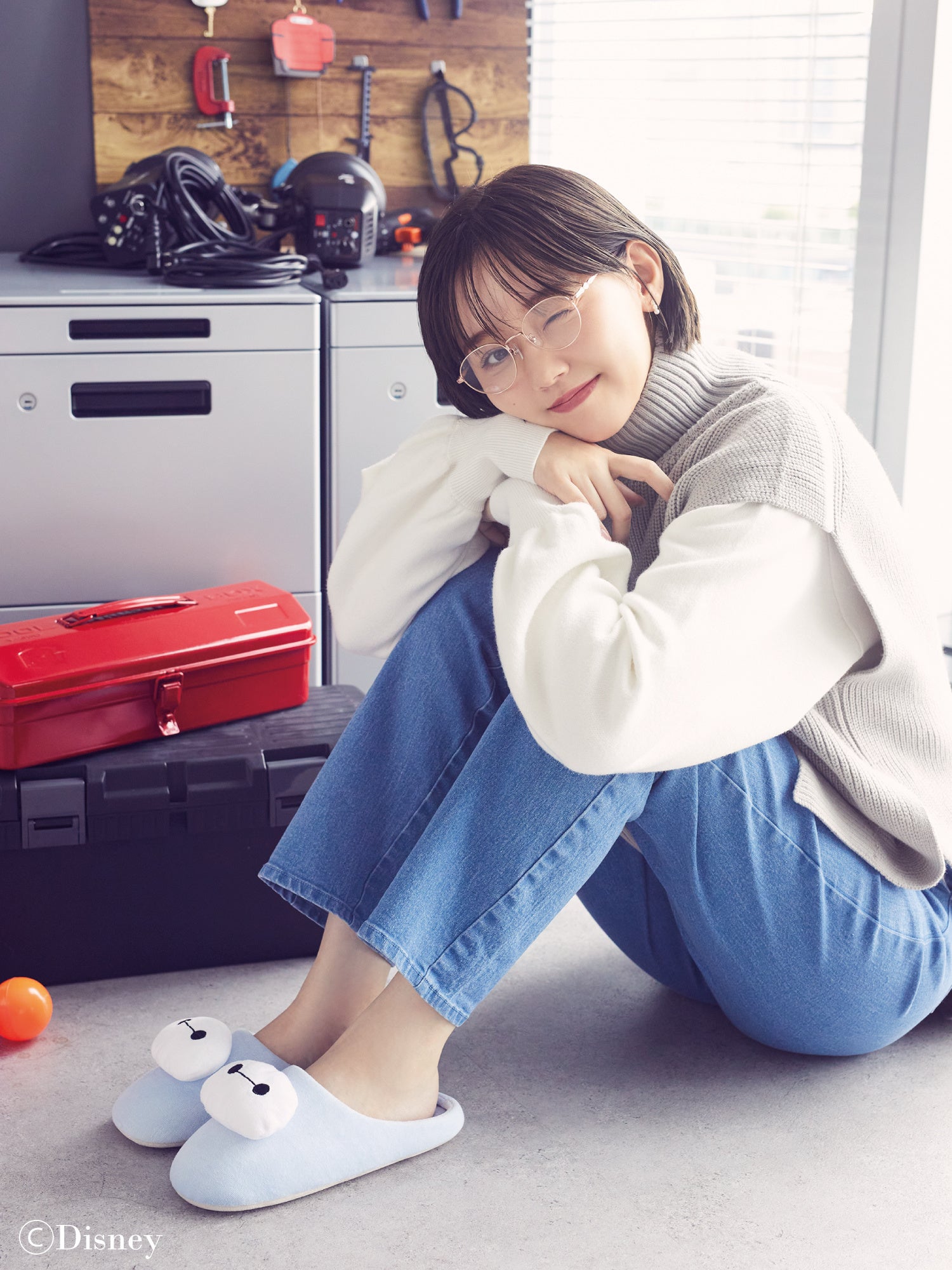 「ベイマックス」のコレクションは日常使いしやすいアイテムを全8型展開いたします。中でも江野沢さんの1番のおすすめは、「ベイマックス」の顏がポイントのルームシューズです。江野沢さん自身が欲しいと思っていたアイテムで、彼女が今一番好きな水色をベースにふわふわ素材の「ベイマックス」を組み合わせました。ご自宅に癒しを与えてくれるアイテムに仕上がりました。
