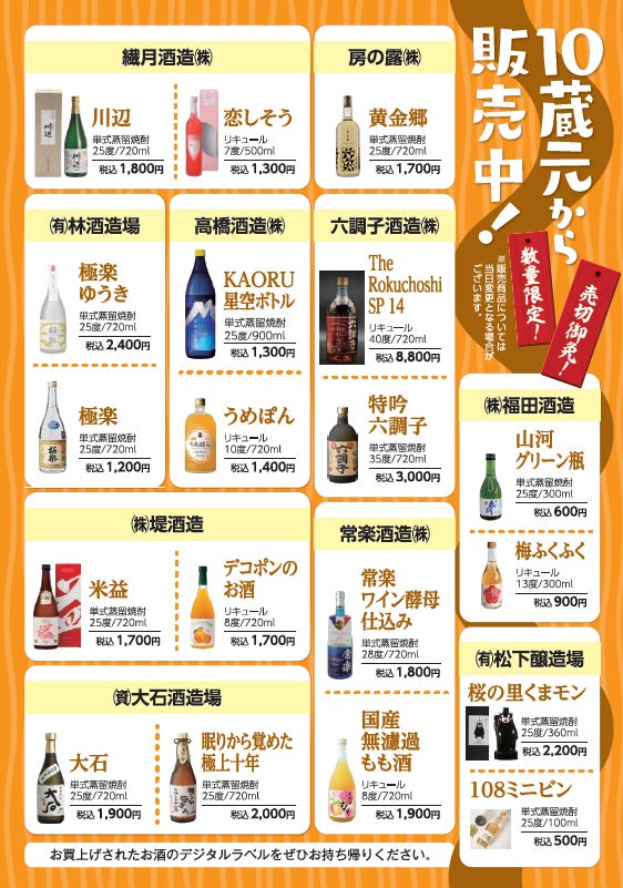 球磨焼酎 14 銘柄・リキュール 5 銘柄(予定)