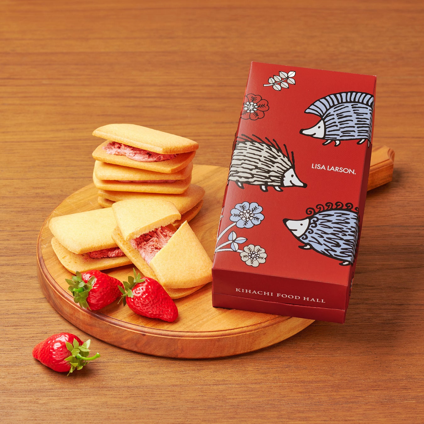 ストロベリーショコラサンドのパッケージから、はりねずみ〈イギー・ピギー・パンキー〉が飛び出した兄弟セット。ショコラサンドは、さっくり香ばしいサブレに甘酸っぱいストロベリークリームが相性抜群です。