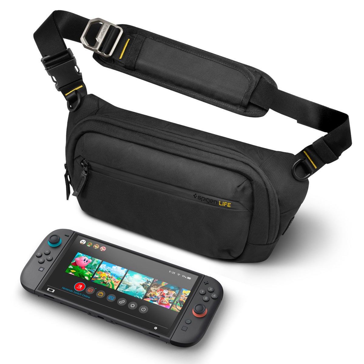 最大6.9インチまでのスマートフォンに対応。iPhone 16 Pro MaxやPixel 9aなどの大型モデルもすっぽり収まるサイズ感です。また、ゲーム機本体や周辺機器もすっきりと収納できます。