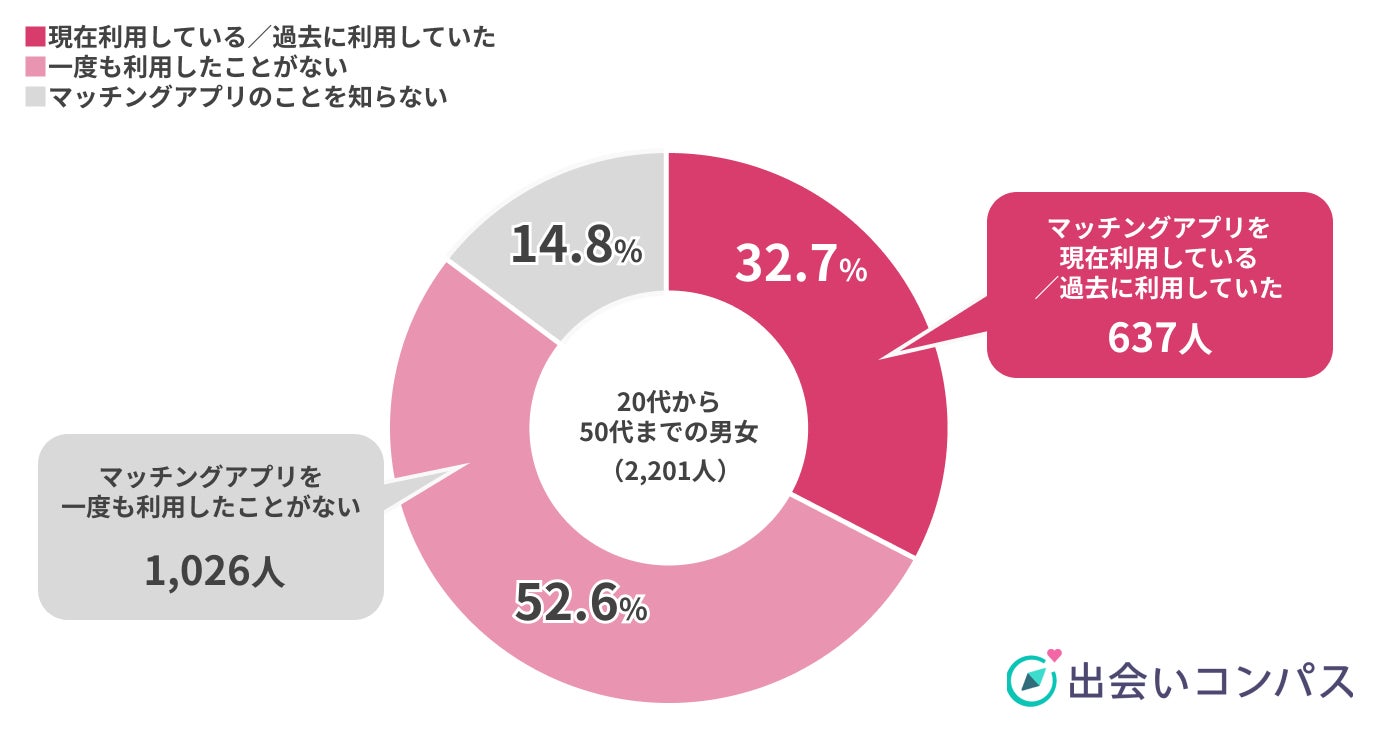 マッチング関連紹介サービス「出会いコンパス」を運営するナイル株式会社(本社:東京都品川区、 代表取締役社長:高橋飛翔、 以下ナイル)は 2025年4月11日から4月21日の期間中、 男女2,201人を対象にマッチングアプリに関するアンケート調査を実施いたしました。