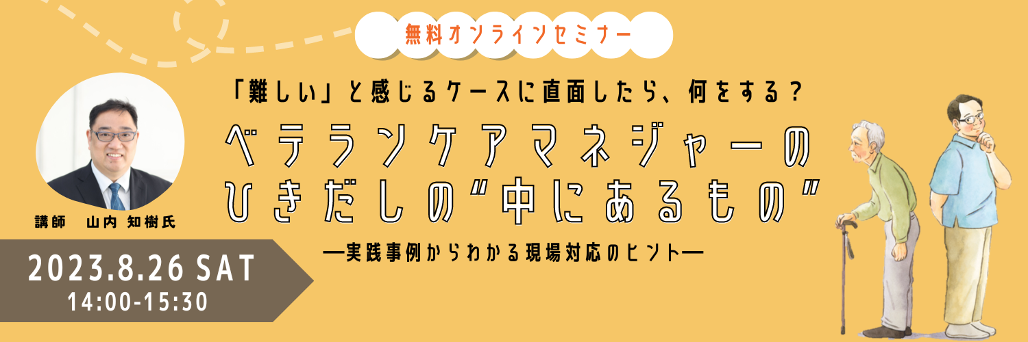 【無料オンラインセミナー】8/26(土)『「難しい」と感じるケースに直面したら、何をする?ベテランケアマネジャーのひきだしの“中にあるもの”―実践事例からわかる現場対応のヒント―』開催!