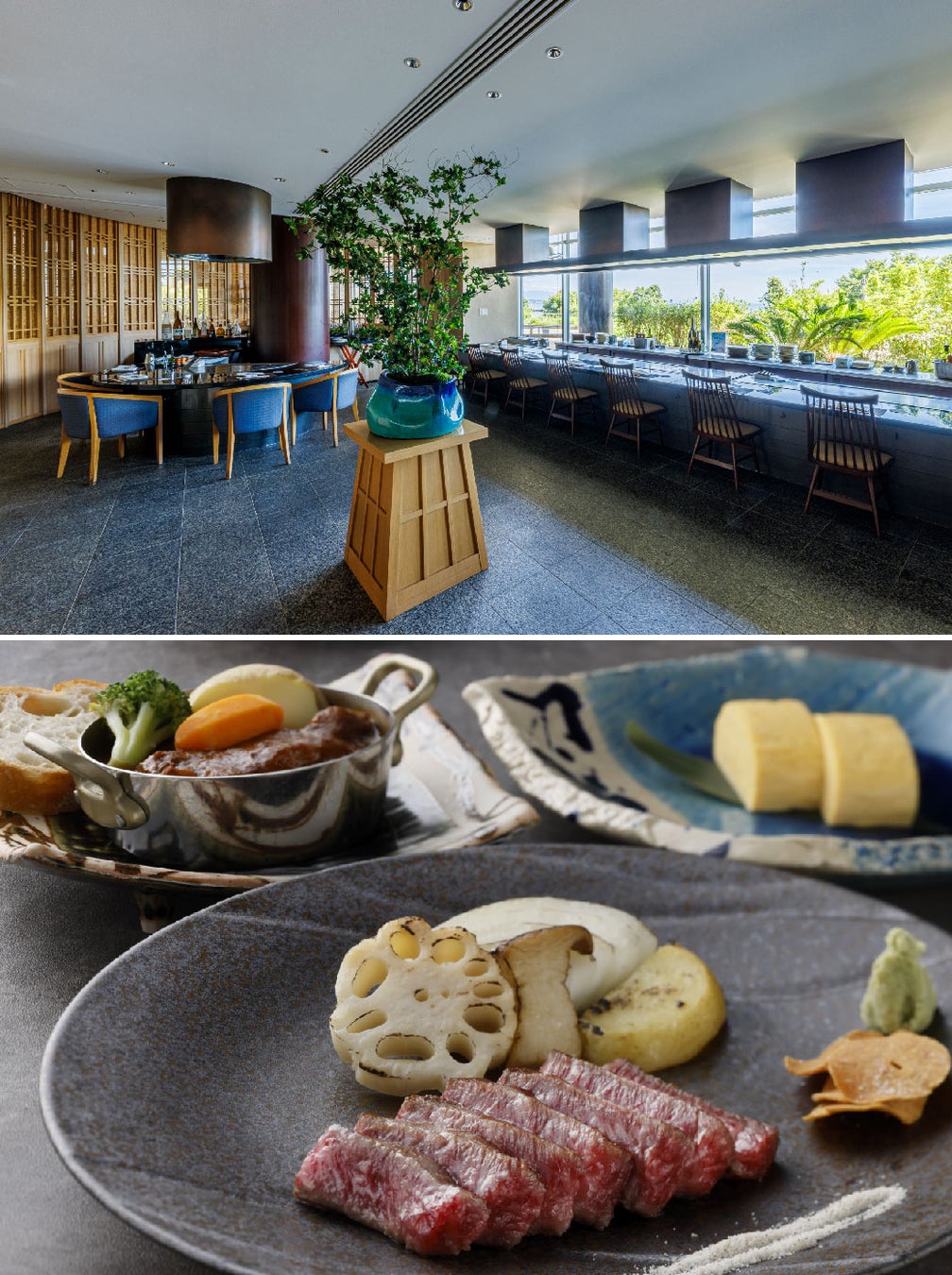 とろけるような甘みと柔らかさが特徴の“近江牛”をカウンターで焼き上げる瞬間は、音、香りをお楽しみいただけます。コトコトと煮込んだ[近江牛ビーフシチュー]は冬の人気メニューのひとつ。シェフが目の前で仕上げるふわふわ食感の[だし巻き玉子]もおすすめです。