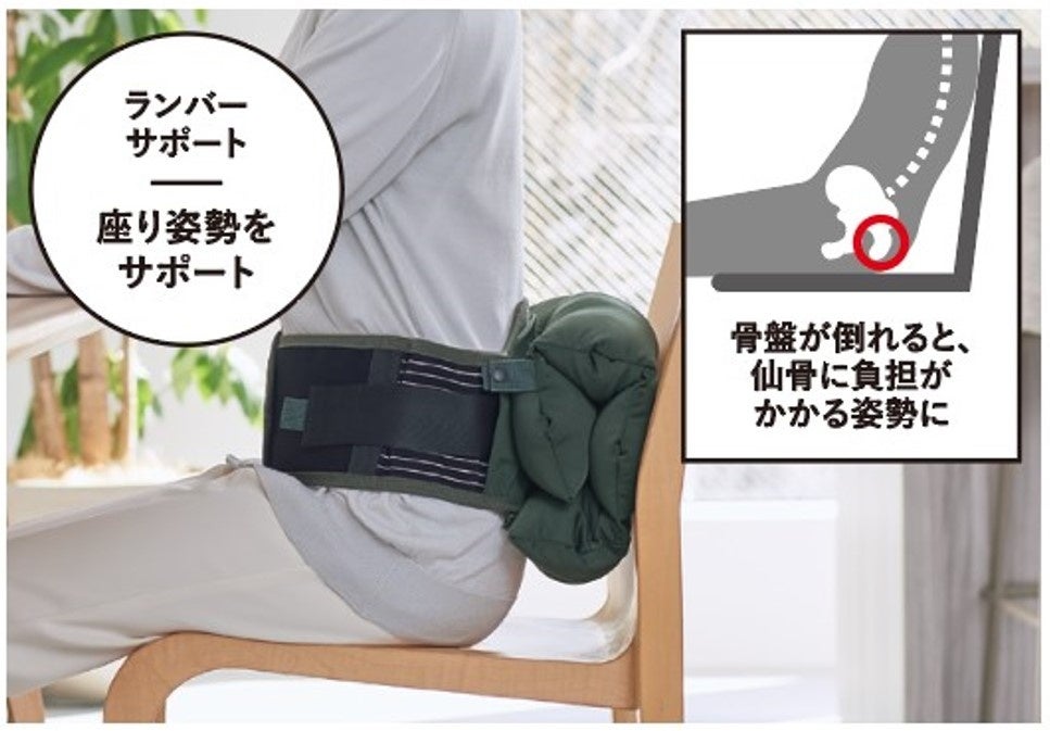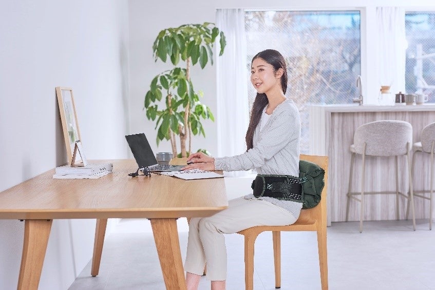 「クッションコルセット」はクッションとコルセットを組み合わせた姿勢をケアする製品です。ランバーサポートスタイル・座面クッションスタイルの2通りから、お悩みに合わせてクッションの使い方を選び、座り姿勢をケアできます。初年度販売目標数量は8,000個です。