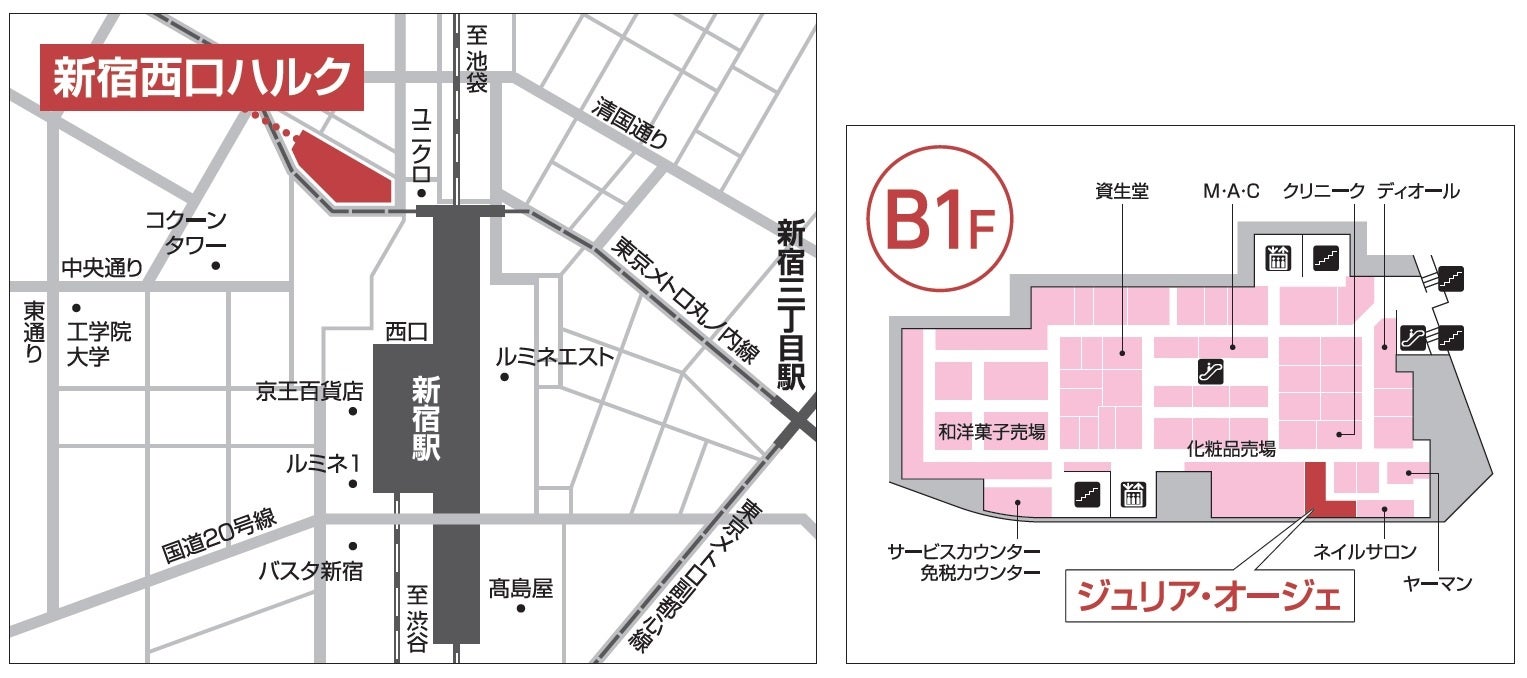 「ジュリア・オージェ 小田急百貨店 新宿店」は、新宿駅西口地下通路に直結する小田急百貨店 新宿店(ハルク内)地下1階の化粧品売場に新規オープンいたしました。