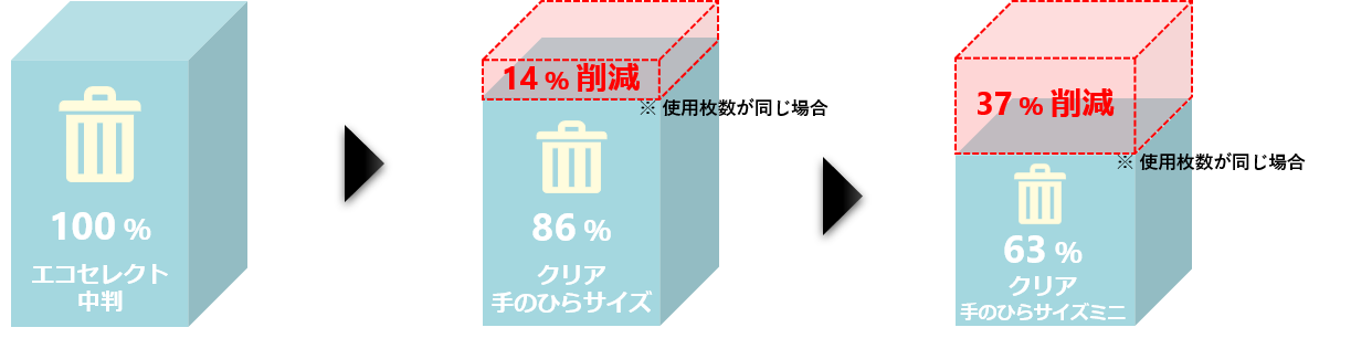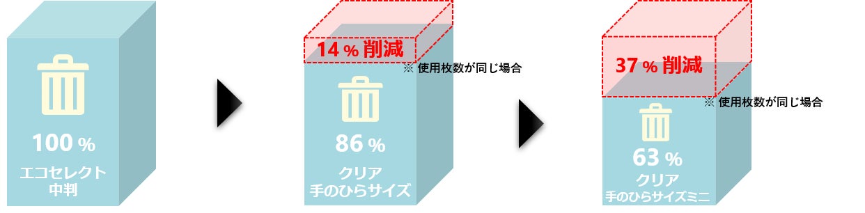 「エルヴェール ペーパータオル クリア」は、従来の吸水力はそのままに無駄なく使えるコンパクトなサイズ(手のひらサイズ:縦230mm×横180mm/手のひらサイズミニ:縦170mm×横180mm)にすることで、省資源化だけでなく、使用後のごみの減量化にも貢献。従来の「エルヴェール ペーパータオル エコセレクト 中判」(縦230mm×横210mm)と比較して、「手のひらサイズ」は約14%、「手のひらサイズミニ」では約37%のごみの減量※2につながります。