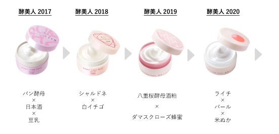 2012年から毎年、一年の幕開けに新年を祝う「お年賀コスメ」として、発酵に着目した夜用美容パック『ナイトタイムパック酵美人』を限定発売してきました。シリーズとして大切にしている発酵素材・ナイトタイムパック・テクスチャ―へのこだわりは変えずに、毎年新たな素材を配合しています。