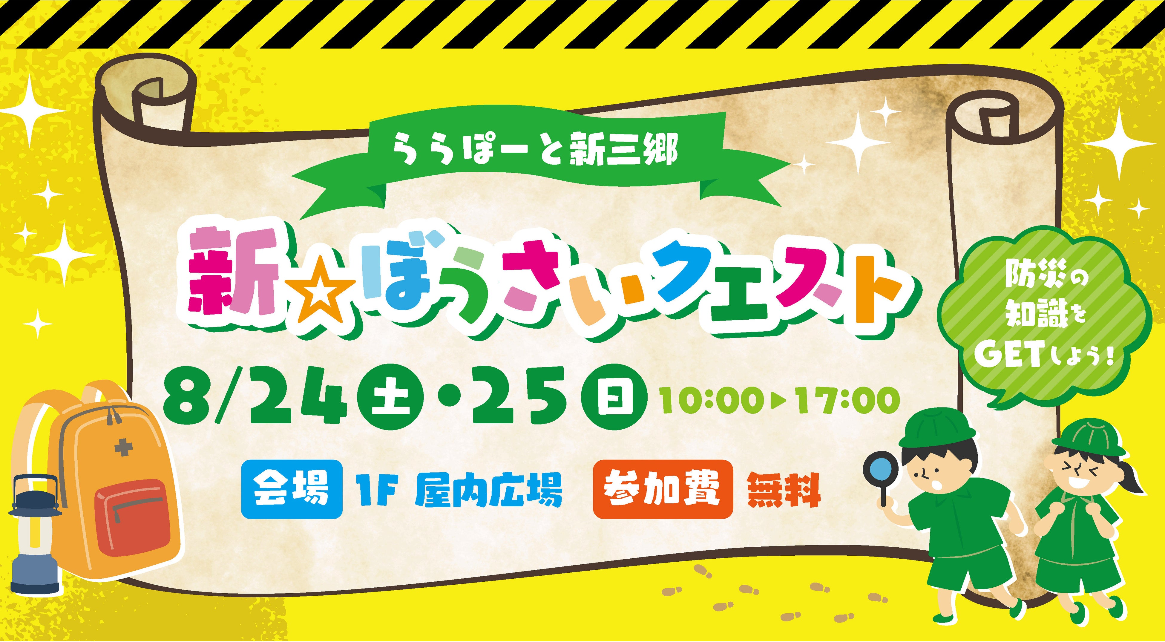 8月24日(土)・25(日)の2日間は、防災の知識を学びに、ららぽーと新三郷へぜひお越しください。