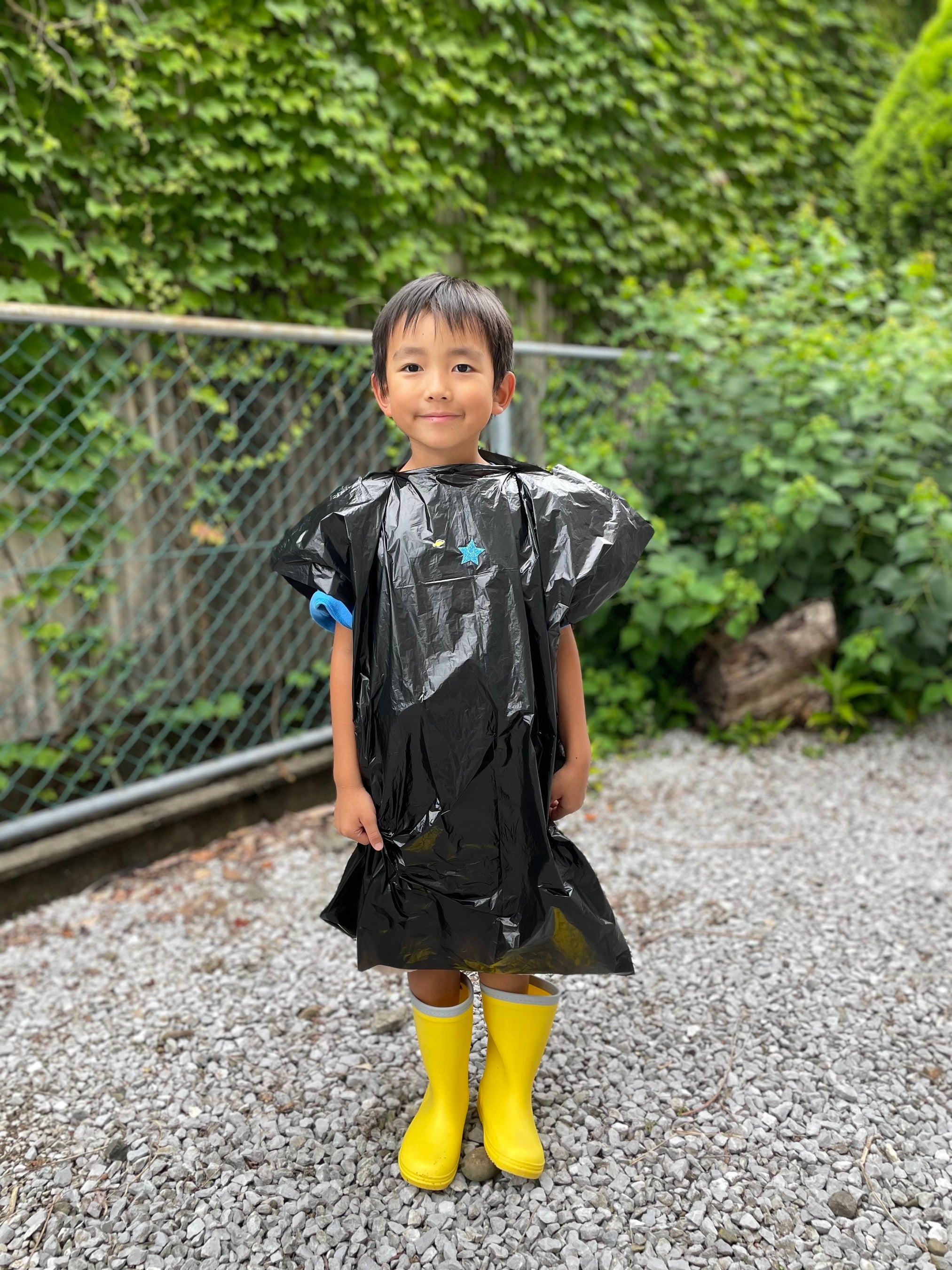 ゴミ袋を使用して、災害時にも寒さをしのぐことができるポンチョを作成します。シールを貼ったり、絵を書いたりして自分だけのオリジナルポンチョを作ってみましょう!