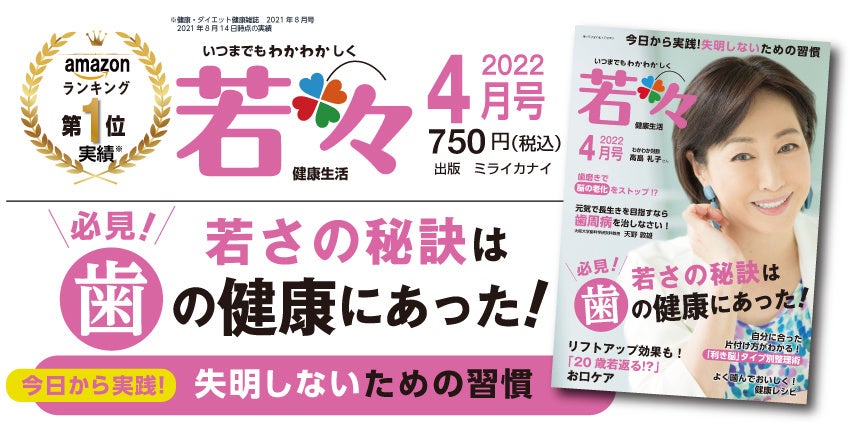 『若々』4月号では、「お口から若々しく健康に!」をテーマに、生活に役立つ情報をお届け。皆さまが「若々しく健康的な生活」を実現するためのお手伝いをいたします。