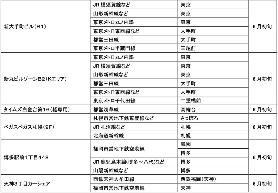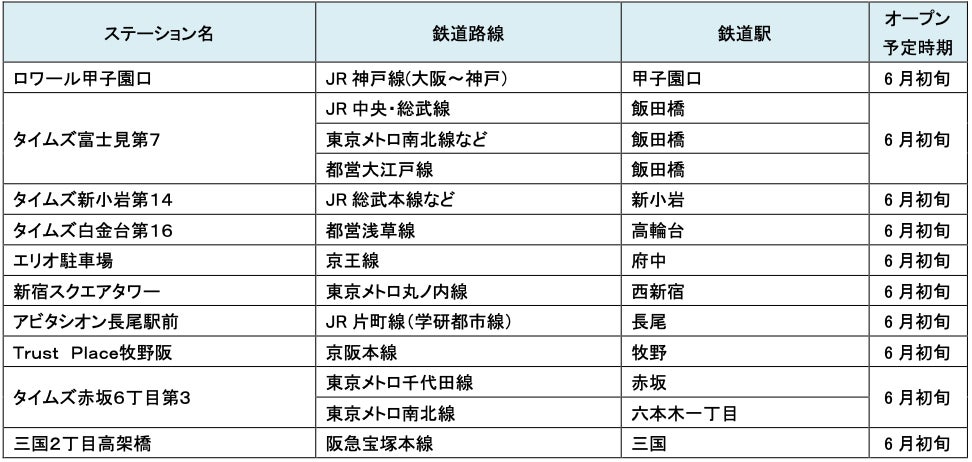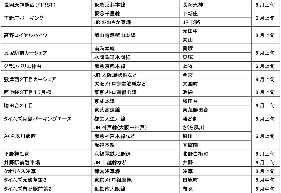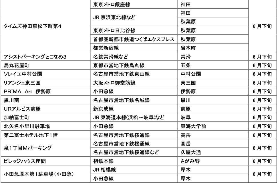 6月にオープンおよびオープン予定の「パーク&ライド」が可能な駐車場は18件、「レール&カーシェア」が可能なステーションは114件です。