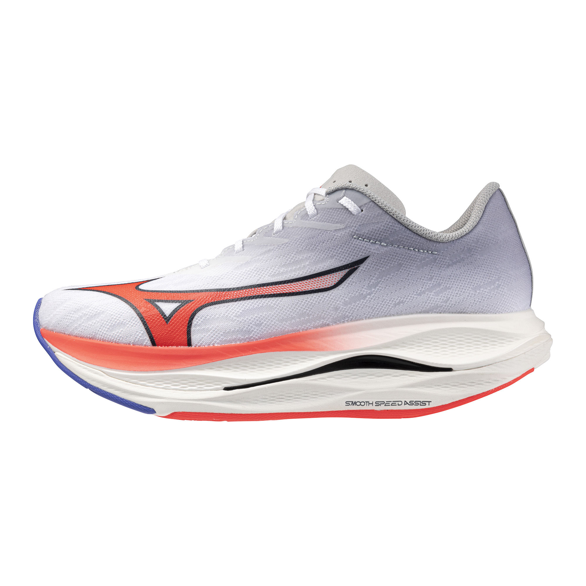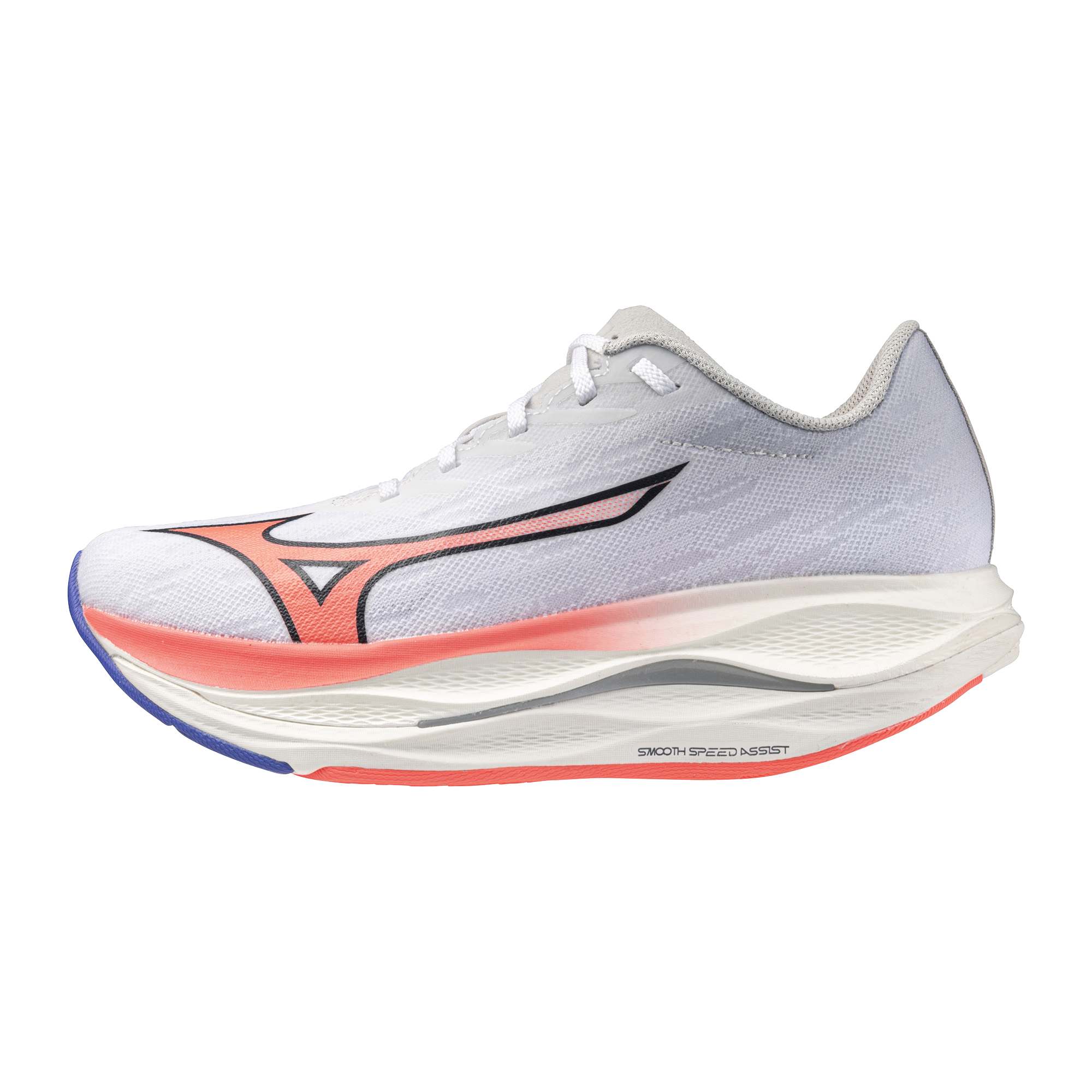 ミズノ独自のソール構造『SMOOTH SPEED ASSIST※2(スムーズスピードアシスト)』は引き続き搭載しており、より効率的なスピード走行をサポート。脚への負担を軽減することで、レース後半でもフォームの崩れを抑え、目標達成に向け力を引き出します。