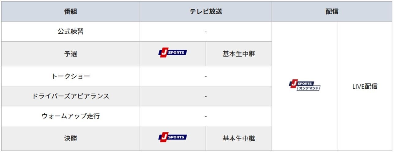 各レース開催2~3週間後の日曜日に放送/配信予定(第2戦、第4戦、第6戦、第8戦を予定 )