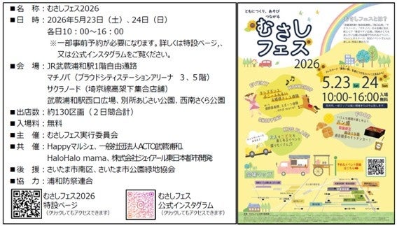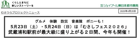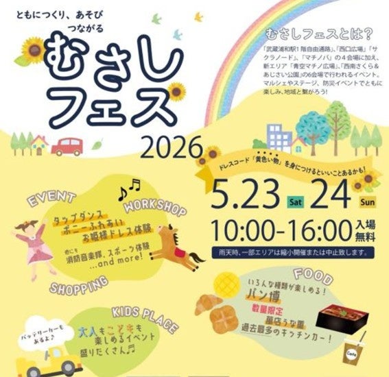 株式会社ジェイアール東日本都市開発は、2026年5月23日(土)・5月24日(日)に開催される「むさしフェス2026」(主催:むさしフェス実行委員会)を共催し、地域の方々と共に武蔵浦和エリアを盛り上げてまいります。