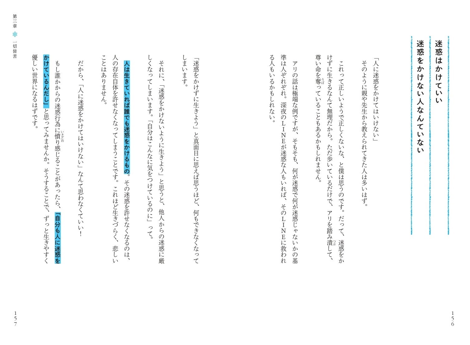 本書では将来の夢が書けなかった少年時代、ファンタジー小説に救いを求めた子供時代、親にも自分にも絶望した受験戦争と就職。そして出家して仏教で生きることを決めた、著者の古溪光大の半生をつづる。また、修行中の悟りや縁を認識して生きる、愛されたければ自分から愛するといった考え、同性婚、推し活、毒親、怒りとの向き合い方など、ツイッターやインスタに寄せられた悩みについて、ふるたにワードで答えている。仏教やお経についてのわかりやすい解説も収録。