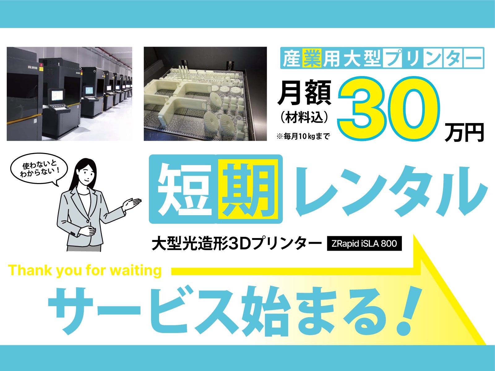 株式会社Bfull(愛知県一宮市、代表:前田直人)は、産業用大型3Dプリンター「ZRapid iSLA880」を対象に、6ヶ月間限定の短期レンタルサービスを開始いたします。
