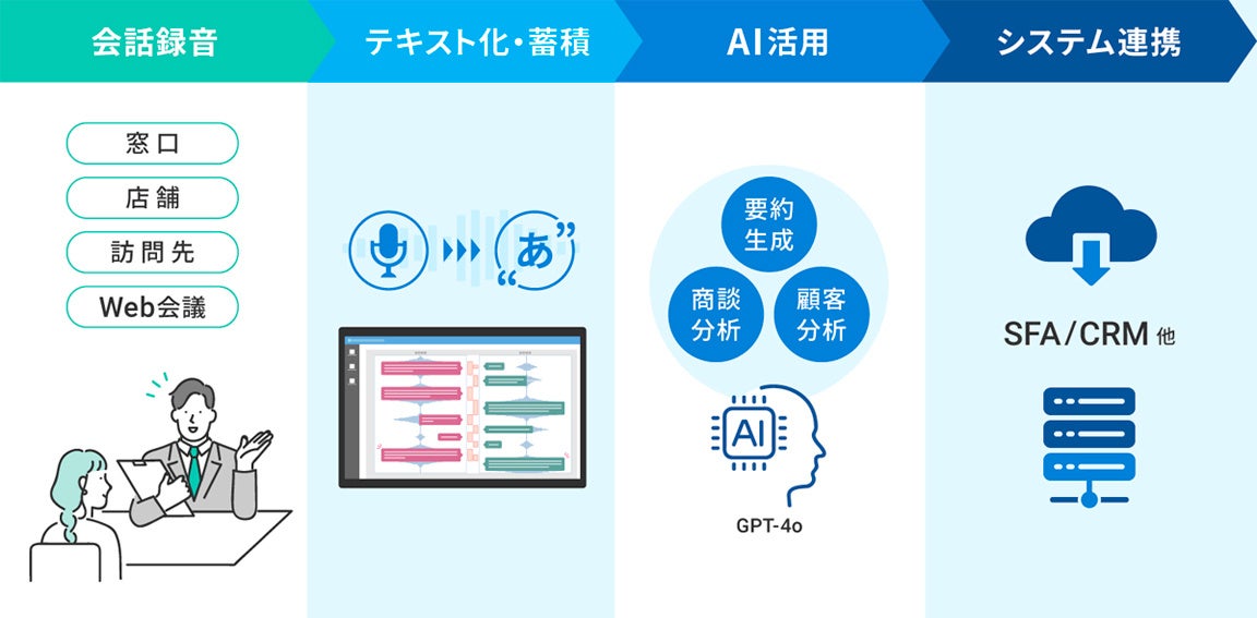 音声認識×生成AIで商談や接客の記録・要約・分析を自動化