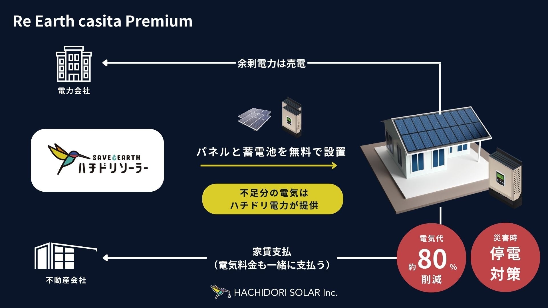 ハチドリソーラー、太陽光発電と蓄電池の搭載で電気代を約80%削減できる賃貸住宅「Re Earth casita Premium」が完成