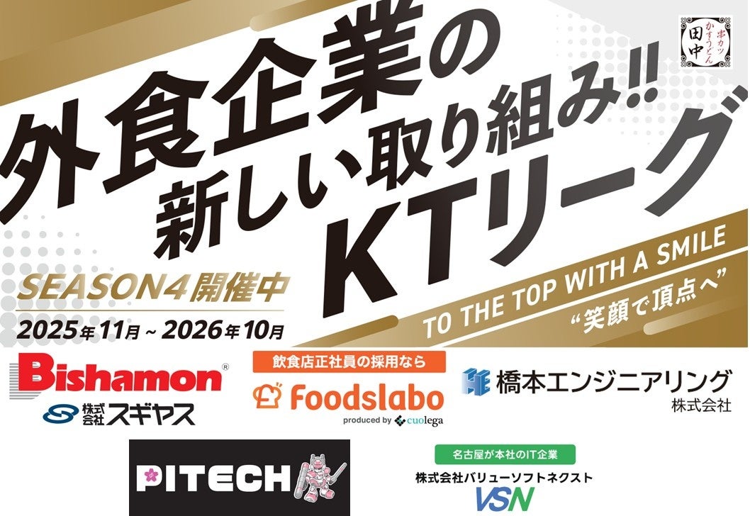 株式会社ユニシアホールディングス(本社:東京都品川区東五反田、代表取締役会長兼社長:貫 啓二)が展開している串カツ田中は、KTリーグをとおして、多くのスポンサー企業様にご支援をいただいております。このたび、スポンサー契約を更新し、2026年4月より各店舗をご支援いただけることになった企業様5社(ご契約更新含む)をご紹介いたします。