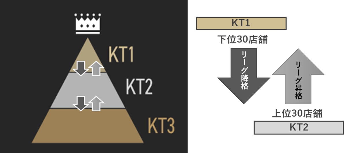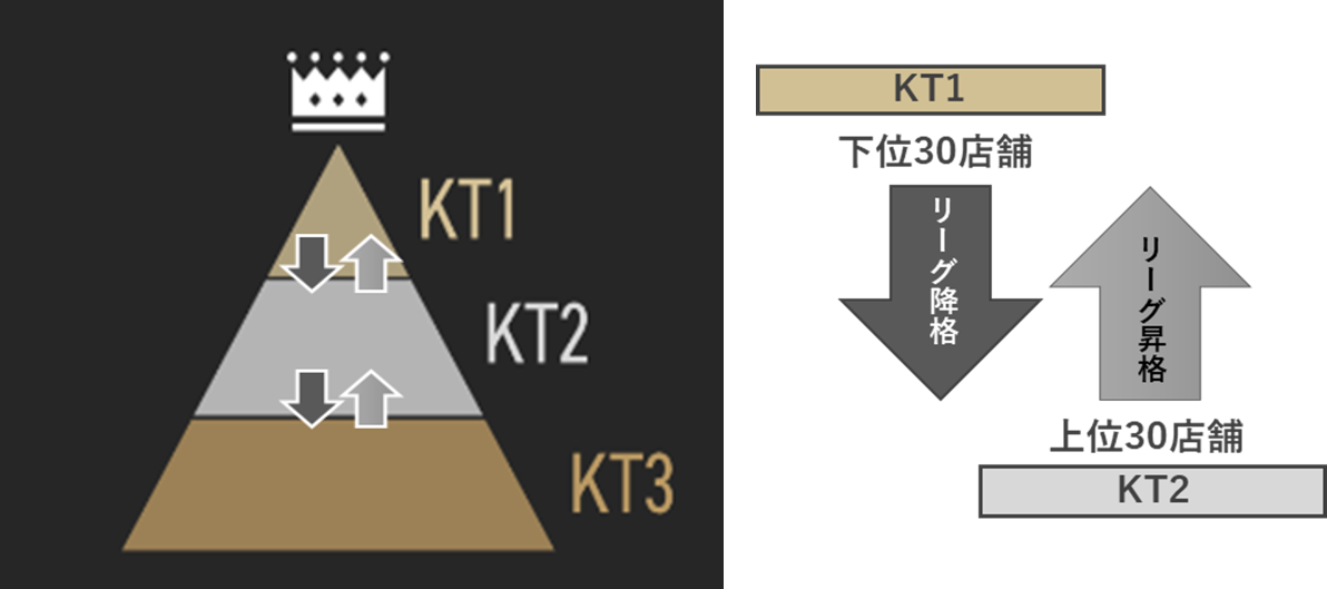 串カツ田中全店舗を3部制のリーグに分け、ポイントを競い合うことで順位付けし、約半年ごとに上位リーグへの昇格・もしくは下位リーグへの降格の基準を設けています。