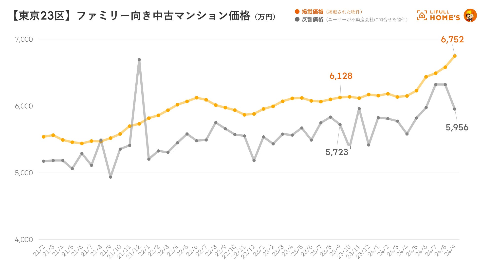 東京23区の中古マンション掲載価格は、シングル向き・ファミリー向きともに過去最高を更新
