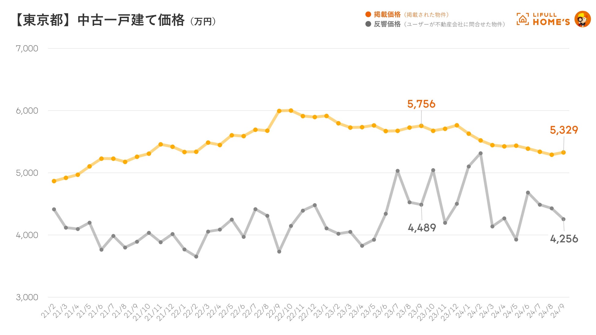 首都圏の中古一戸建て掲載価格は、13ヶ月連続で前年同月を下回りました。