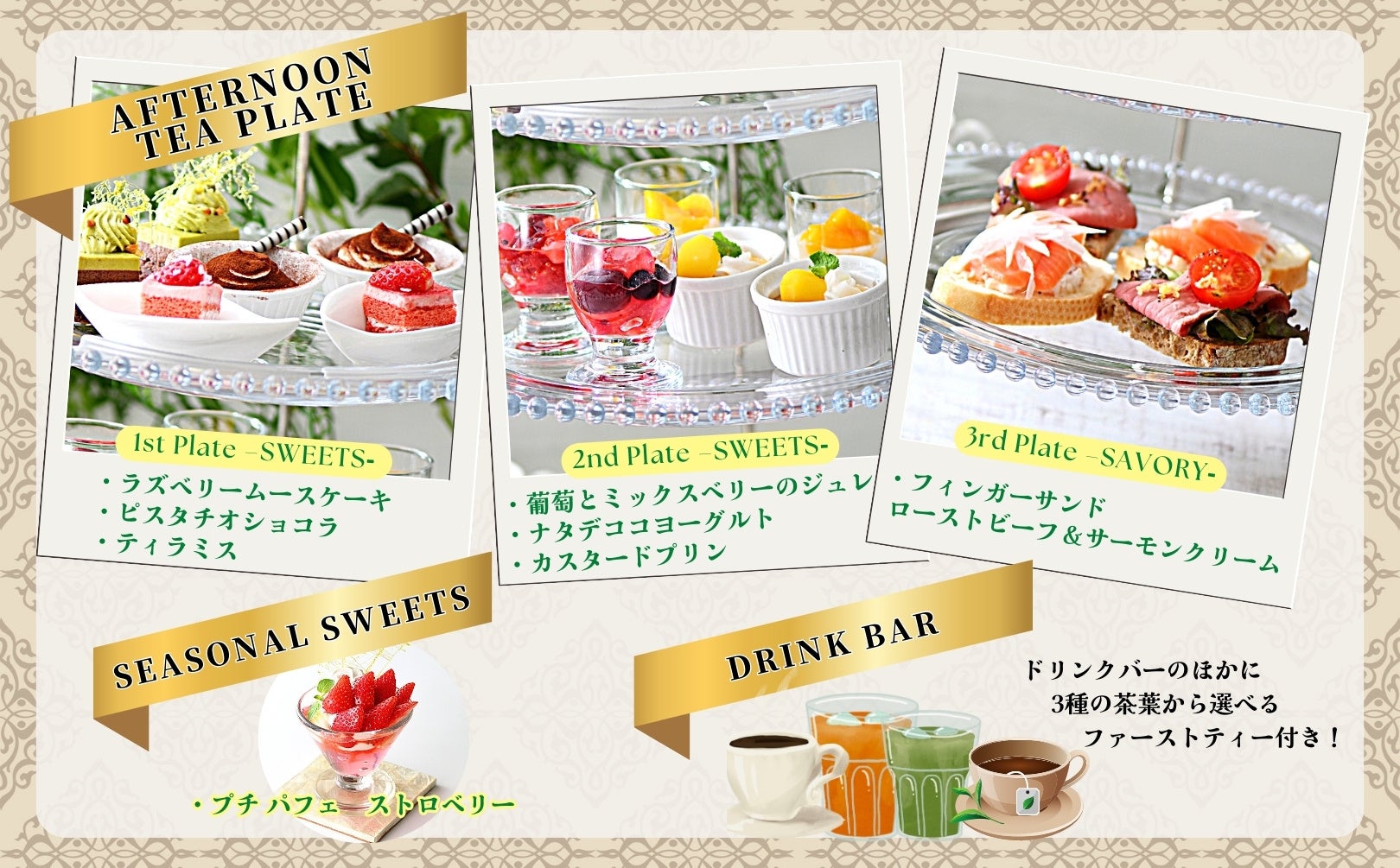 沢山のスイーツ達と、温かく香り豊かなティーを満喫して癒しのひとときをお楽しみくださいませ。