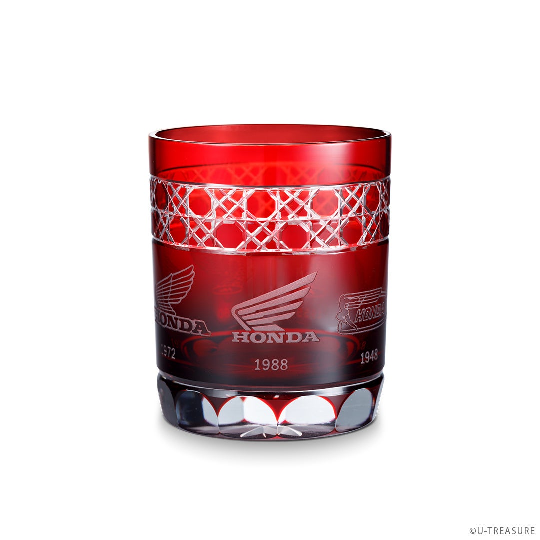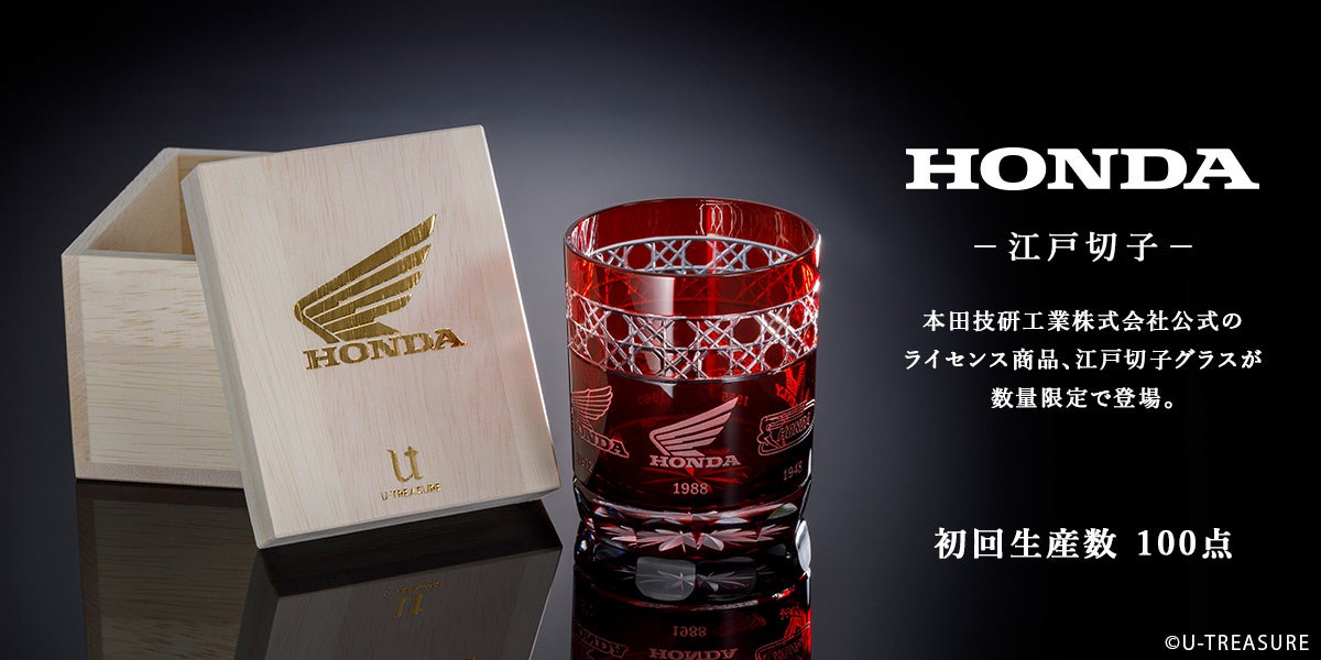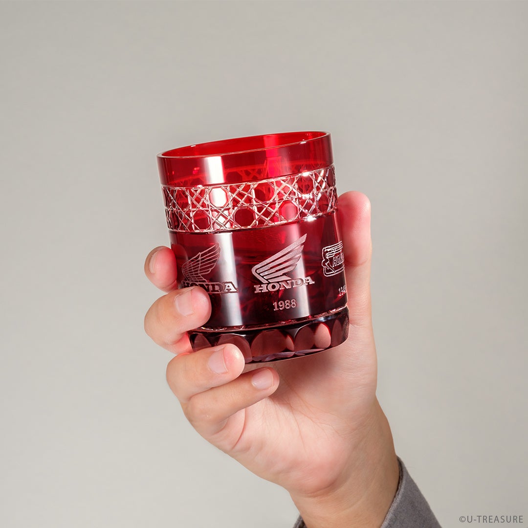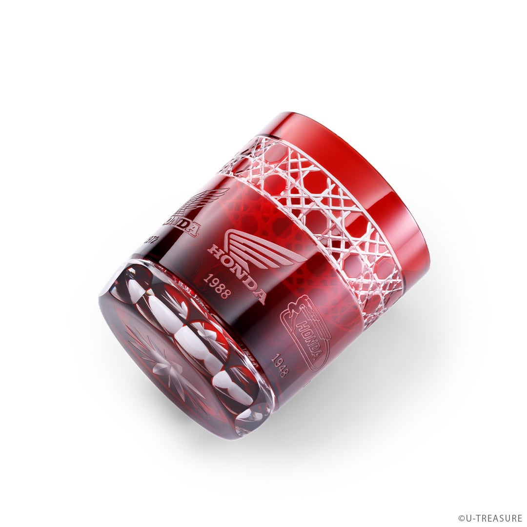 【Honda】二輪車の「Wingマーク」7種類をデザインした赤色の江戸切子グラスを発売。特製の箔押しロゴをあしらった桐箱でお届け。初回生産数100点、11月30日(木)まで予約受付