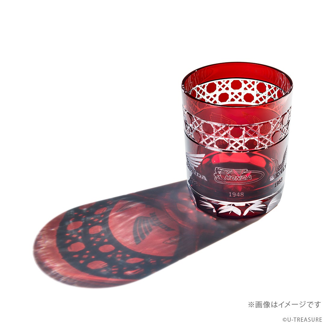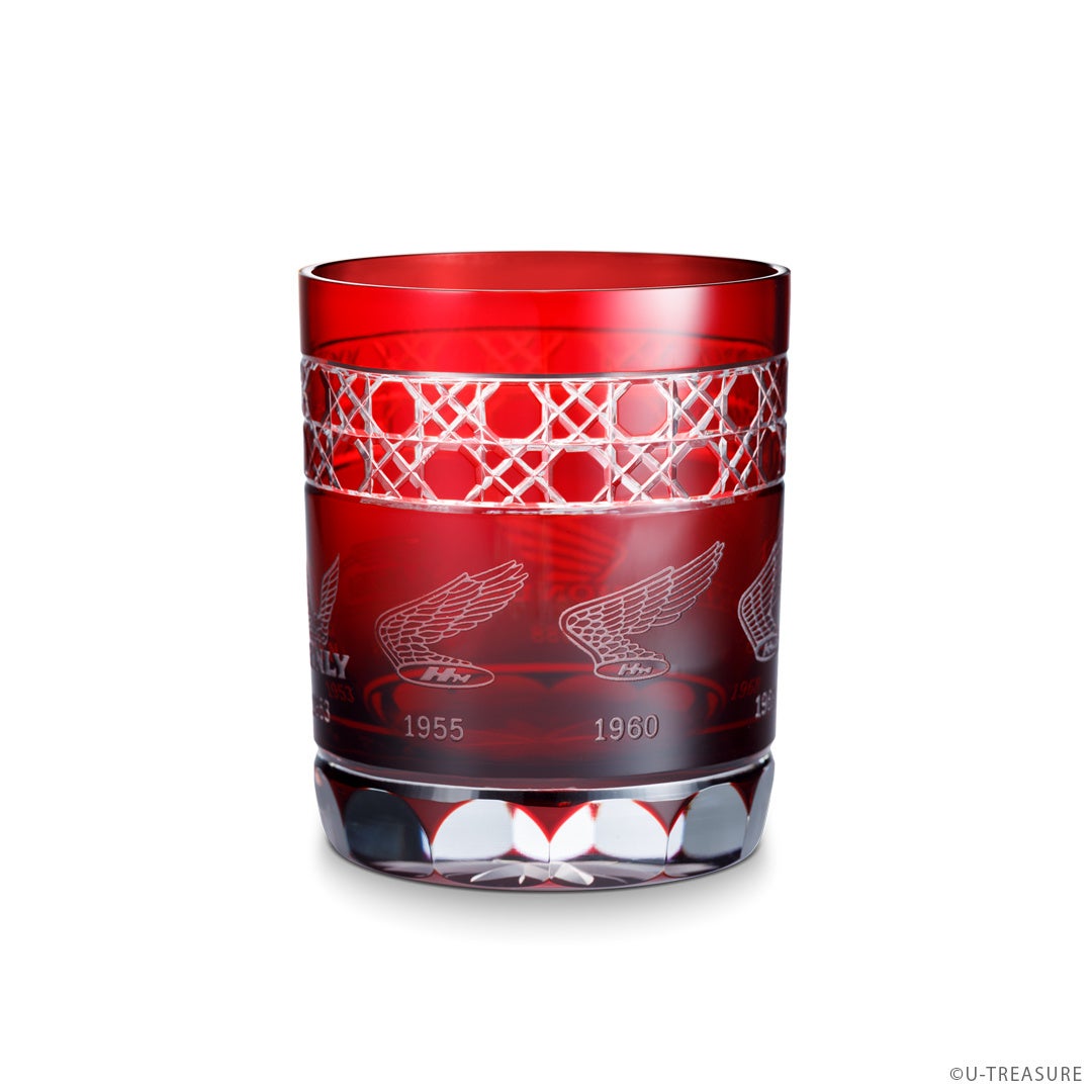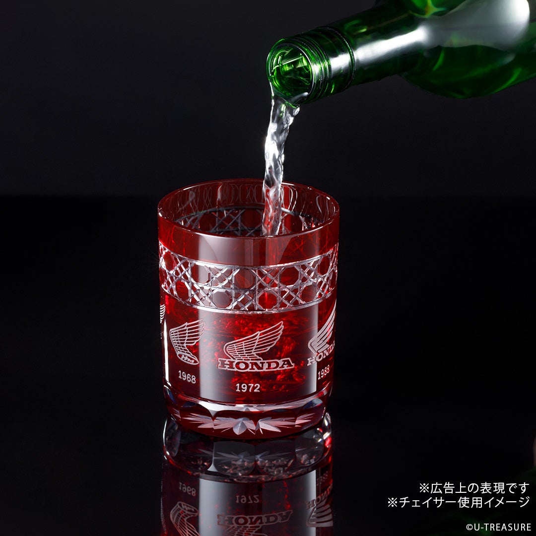 【Honda】二輪車の「Wingマーク」7種類をデザインした赤色の江戸切子グラスを発売。特製の箔押しロゴをあしらった桐箱でお届け。初回生産数100点、11月30日(木)まで予約受付
