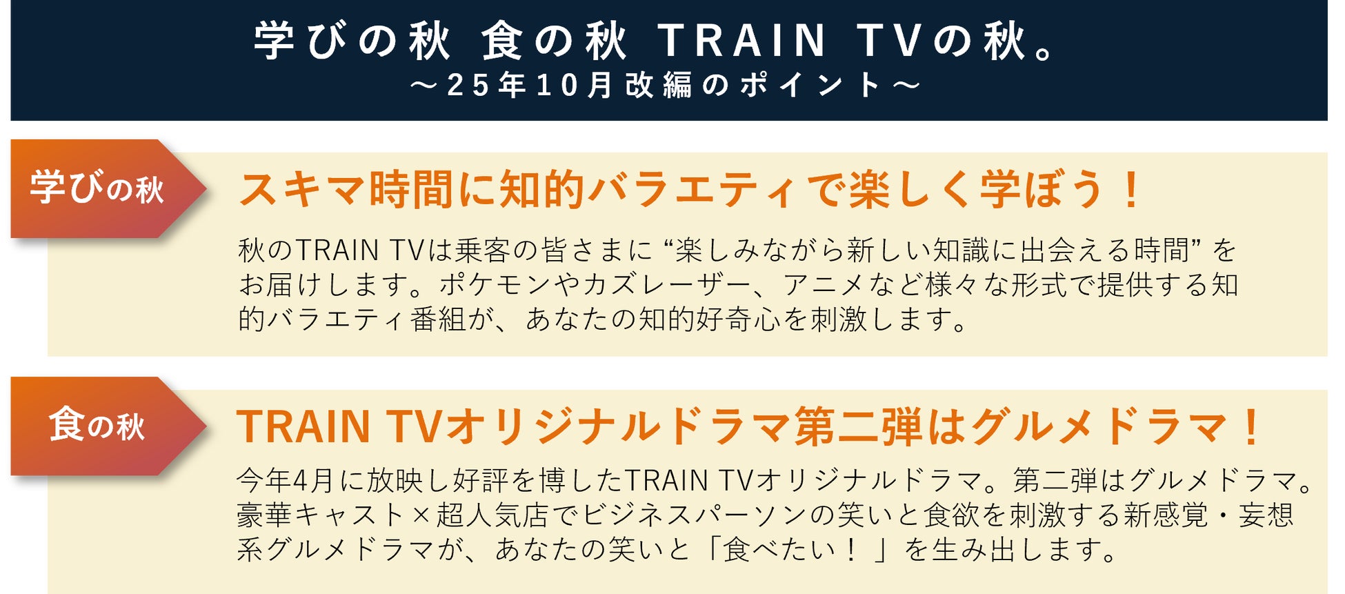 “電車の中のテレビ局“ TRAIN TV 秋の大型改編“学びと食の新番組” 10月よりスタート!