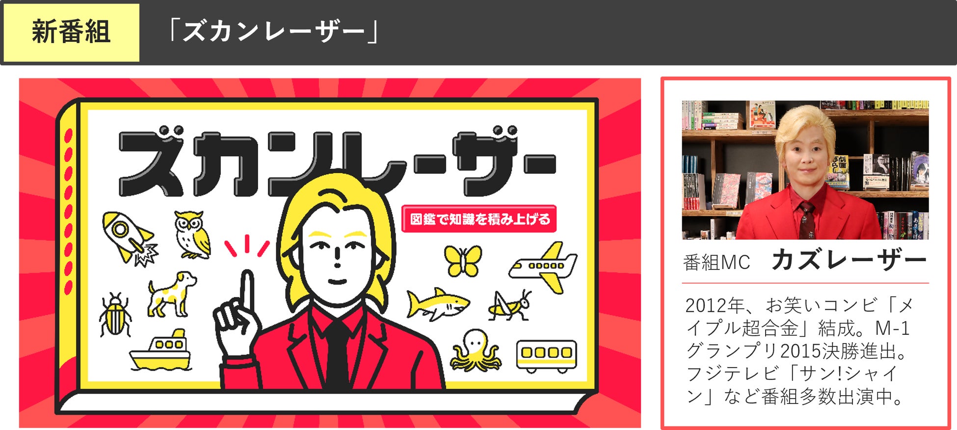 無類の図鑑好きのカズレーザーが、世の中の様々な図鑑を読み解く知的探求バラエティ番組。