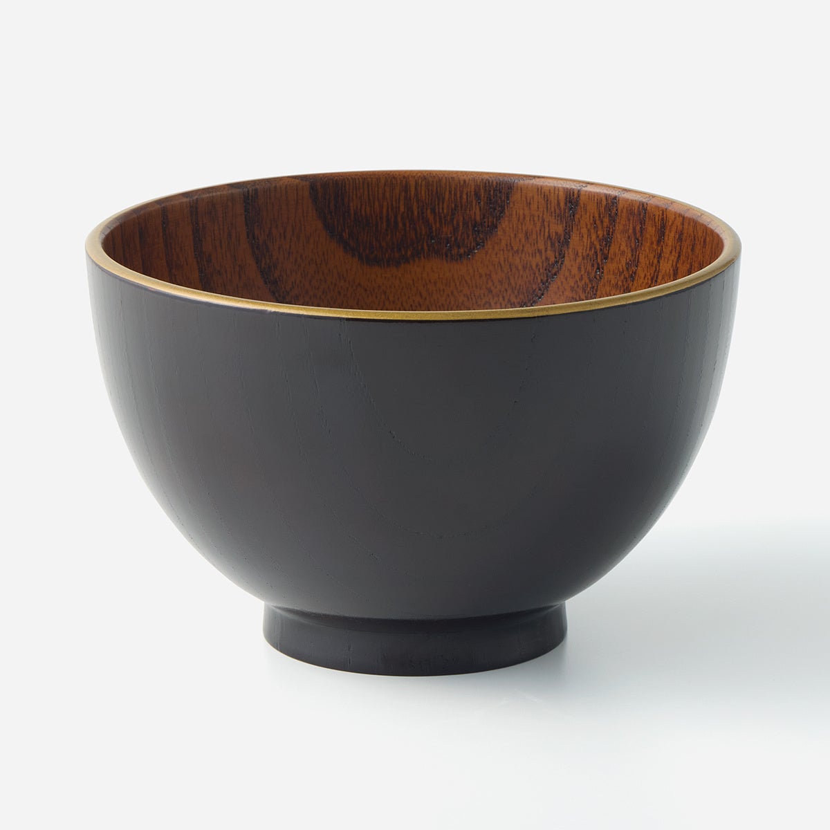 福島県会津若松市で作られた木椀で、外側にウレタン塗装と金色の縁を施し特別感を演出し、たっぷり入る形状でお雑煮に最適、普段使いにも煮込みうどんや海鮮丼に便利な持ちやすいサイズで、高台部分は水切れの良い滑らかな凹みを備えています。